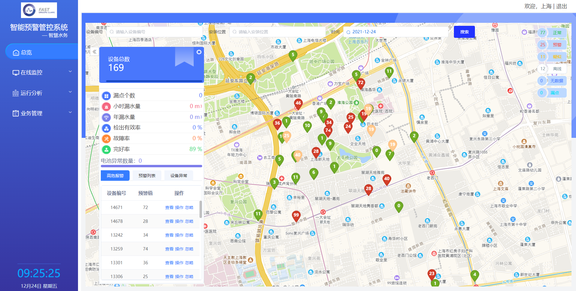 在此次寒潮到來之際,由山科智能開發(fā)的管網滲漏預警系統(tǒng)在上海城投水務的管網檢查中起到了重要作用。系統(tǒng)及時報警微小漏點后,經過工作人員搶修,降低進一步漏水或爆管的風險,做到精準判別管網暗漏,實現寒潮期間居民平穩(wěn)供水。